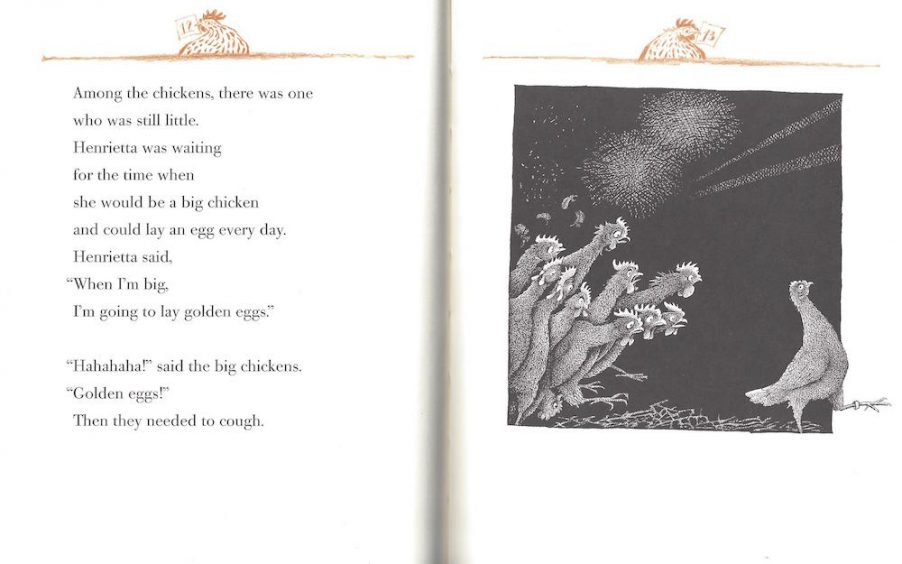 Henrietta has big dreams for a little chicken: learning to sing, to swim, to fly, and, most important of all, to lay golden eggs. Even when her three thousand, three hundred thirty-three fellow inmates in the old hen house laugh at her ambitions, Henrietta holds fast, practicing day and night. And while she's honing her talents, she's also getting ready to move on to the bigger, brighter world she can see through the tiny hole in the hen house wall.