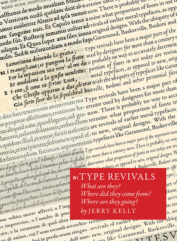 For typographers, revival type forms an integral part of their font repertoire. Older classics such as Baskerville, Garamond, and Bodoni are imbedded fonts in standard operating system collections and continue to serve their users well, being the trusted go-to tools of the best professional designers. All revivals are digital interpretations of lost originals. In almost every case, there is, and has to be, considerable selection, revising, and re-formatting involved. The nature of such work is little understood or appreciated. The definition, application, and use of type revivals has been neglected, or worse, misunderstood. Jerry Kelly's Type Revivals sheds new light on the subject. No one in a position to select a typeface, or use type in a book work, should be without it.